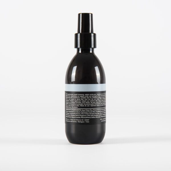 Odżywka do włosów w sprayu, polecana do każdego rodzaju włosów, w tym do cienkich i pozbawionych objętości. Odpowiednia także dla dzieci powyżej 3. roku życia. Ułatwia rozczesywanie plączących się kosmyków i zapewnia intensywne nawilżenie przez cały dzień. Zawarty w niej biotechnologiczny wyciąg z pomidorów jest bogaty w likopen, czyli składnik o silnym działaniu antyoksydacyjnym. Prebiotyczny ekstrakt z winorośli wzmacnia łodygę włosa, natomiast wyciągi z zielonej herbaty i głogu nawilżają i zmiękczają włosy, ułatwiając ich układanie. Odżywka jest idealna do codziennego stosowania na ostatnim etapie pielęgnacji lub jako kosmetyk do ekspresowego użycia, zawsze gdy nie masz czasu nałożyć maski lub odżywki do spłukiwania.