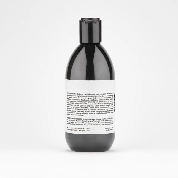 Nawilżająca odżywka do włosów do codziennego stosowania dla całej rodziny, w tym dzieci powyżej 3. roku życia. Ułatwia rozczesywanie, dodaje miękkości i blasku wszystkim rodzajom włosów. Zawiera aż 98,7% składników pochodzenia naturalnego opatrzonych certyfikatem ICEA Cosmos Natural, który gwarantuje ich czystość i bezpieczeństwo stosowania. Odżywka zawiera biotechnologiczny fitokompleks z dzikiej róży o silnych właściwościach nawilżających i przeciwrodnikowych. Pomaga zapobiegać osłabieniu włosów pod wpływem działania szkodliwych czynników zewnętrznych, takich jak zanieczyszczenia powietrza. Polifruktoza z cykorii wzmacnia pasma oraz – w kontakcie ze skórą – wspomaga rozwój bytujących na niej dobroczynnych bakterii. Dodatek oleju kokosowego to sposób na ochronę naturalnej wilgotności łodygi i tym samym zapobieganie szorstkości włosów i ich skłonności do plątania. Odżywka idealnie sprawdzi się jako kosmetyk do codziennej pielęgnacji dla osób o wrażliwej i alergicznej skórze głowy.