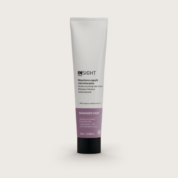 Formuła regenerującej maski do włosów Insight zawiera organiczny ekstrakt z kiełków pszenicy oraz fitokompleks odbudowujący, składający się z masła oliwnego i oleju arganowego, które mają właściwości regenerujące, nawilżające i odżywcze.