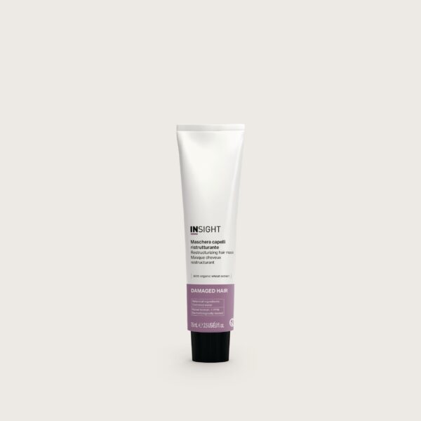 Formuła regenerującej maski do włosów Insight zawiera organiczny ekstrakt z kiełków pszenicy oraz fitokompleks odbudowujący, składający się z masła oliwnego i oleju arganowego, które mają właściwości regenerujące, nawilżające i odżywcze.
