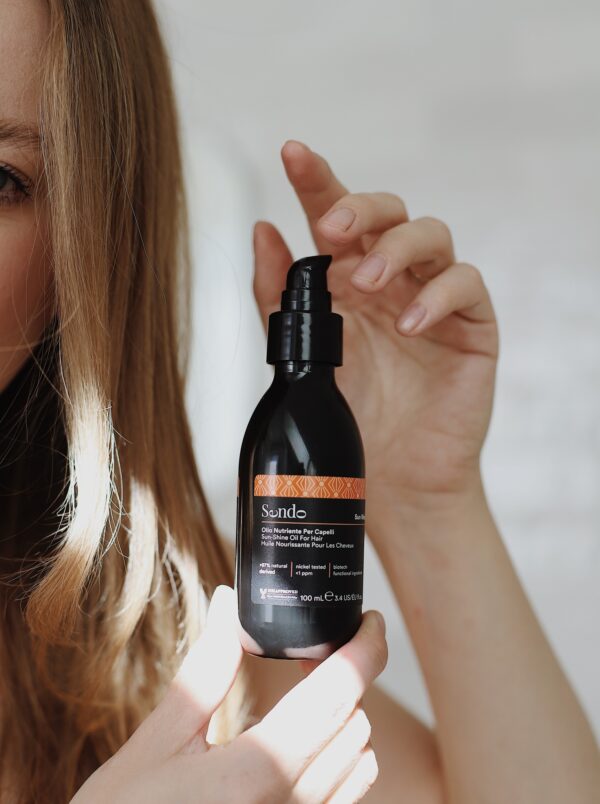 Bezpośrednio przed ekspozycją na słońce rozprowadź kilka kropli olejku na całej długości włosów. Możesz stosować go zarówno na suche, jak i wilgotne włosy.
