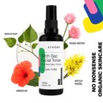 Tonik do twarzy z sokiem brzozowym i wodą różaną, bez alkoholu.